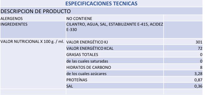 Pasta de cilantro para condimentar. Aporte de nutrientes como vitamina A, C y K, fibra y minerales. Ideal para preparar aderezos, condimentar sopas, cremas, carnes y pescados.
